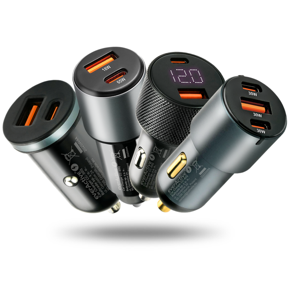 Nowa seria ładowarek samochodowych everActive z gniazdami USB. PowerDelivery od 35W do 83W. Możliwość szybkiego ładowania do dwóch urządzeń naraz. Wsparcie najpopularniejszych technologii szybkiego ładowania.